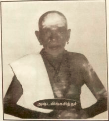 He was seen in Tiruvannamalai theradi street in the early part of 20th century. He always carried a bundle of dirty clothes in one hand and wearing a copper bangle on his one leg. He was always drawing some lines on the floor. He was always in silence and unknown to all. He never accepted any offering from anyone. He wandered the streets of Tiruvannamalai for many years and was never seen eating any food. This Sivayogi disappeared suddenly and after many years re appeared in Agni theertha area. He was wandering there for some time and left his body. His samadhi is located beside Seshadri ashram.